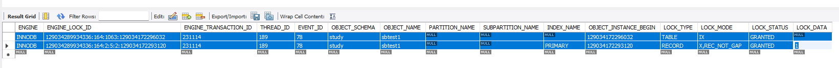 그렇게에 MySQL workbench 내에서 Safe모드를 켤 경우 키가 포함되어있지 않으면 쿼리가 실행되지 않습니다. 락이 어떻게 발생되는지 확인하는 방법은 생각보다 쉽습니다