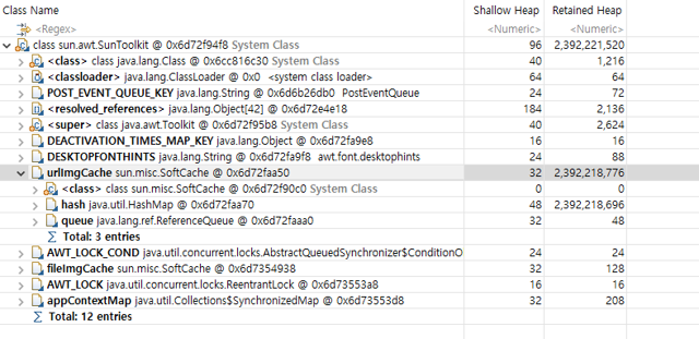 char[] 배열이 메모리를 과도하게 차지하고 있었으며, 이를 추적해보니 AWT 관련 라이브러리와 연관된 것을 확인했습니다.
